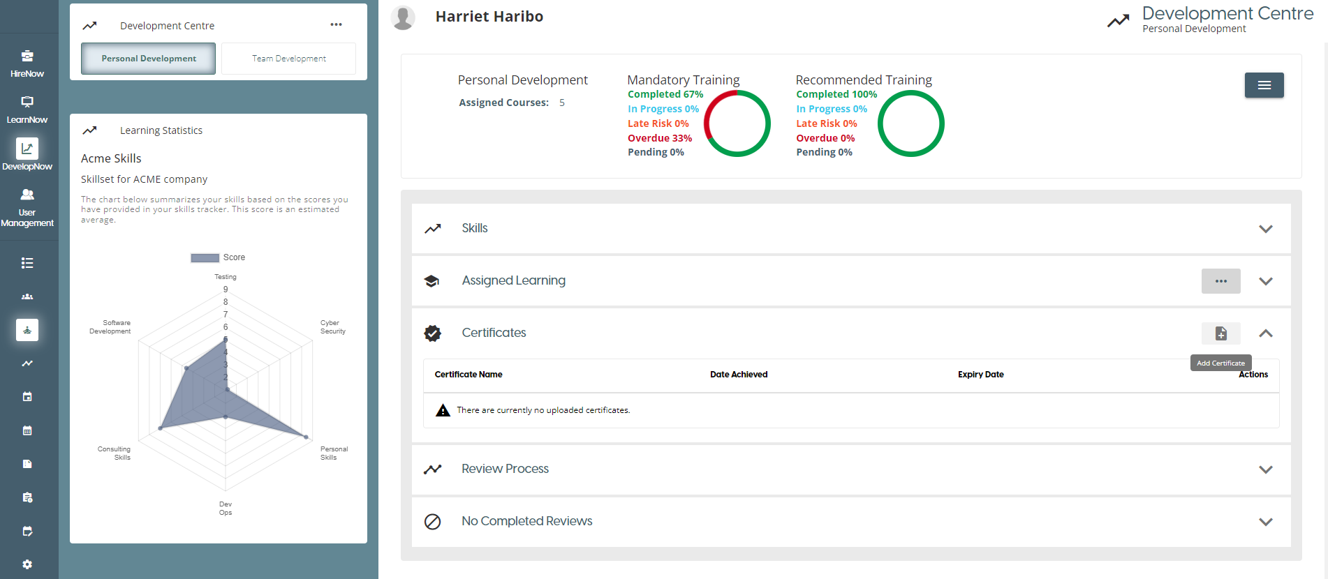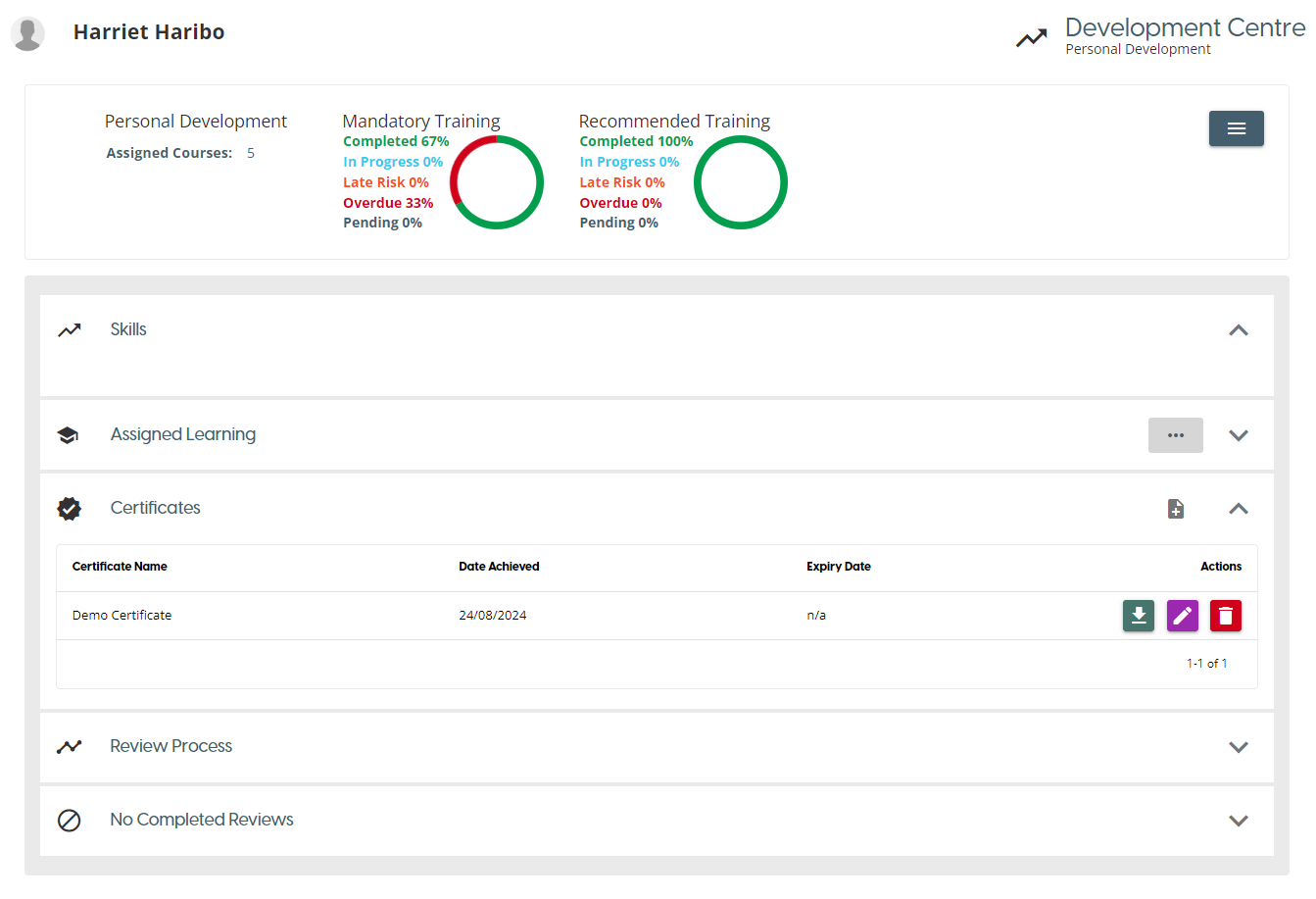 - The Edit icon will let you update the Date Achieved and the Expiry Date values. If you wish to change the name, delete the file first then upload a new one with the updated name.