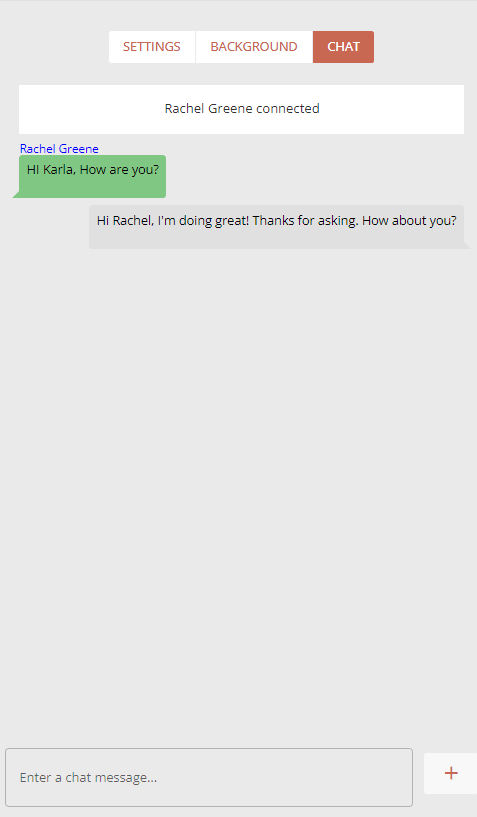 An applicant can send and receive live chat from the interviewers during an interview. All messages can be seen in the panel on the right of the page when you click on the Chat tab.