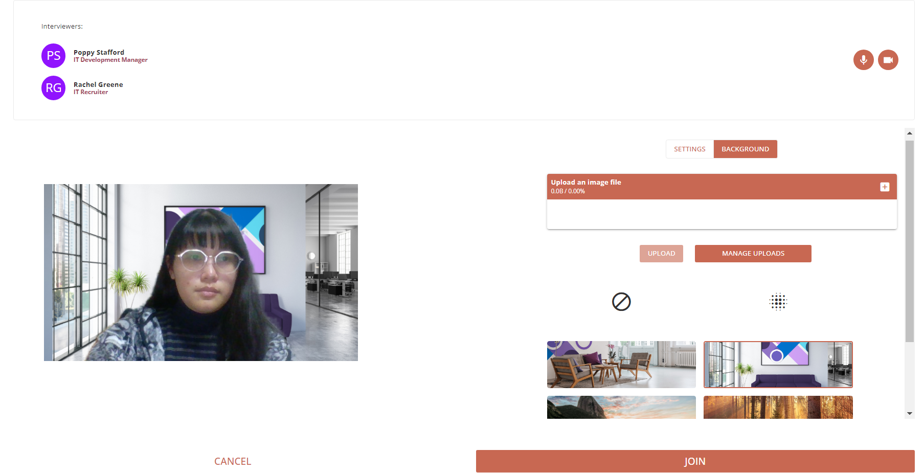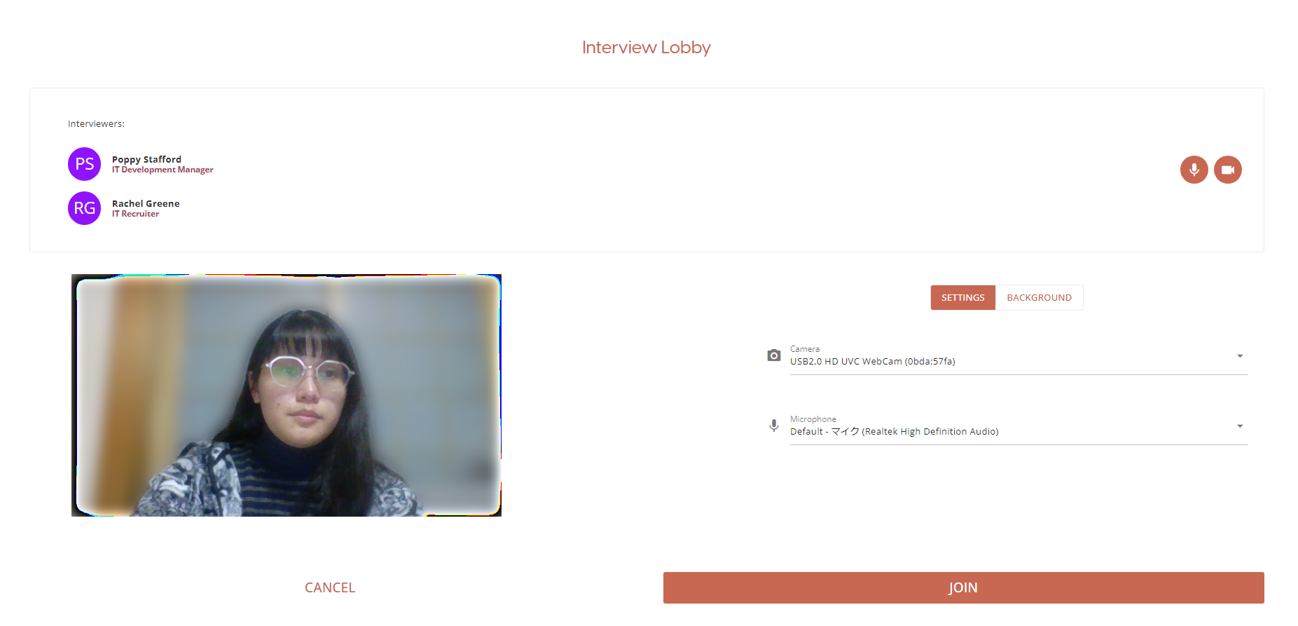 Once you are happy with your setup, click on the Join button to join the interview.