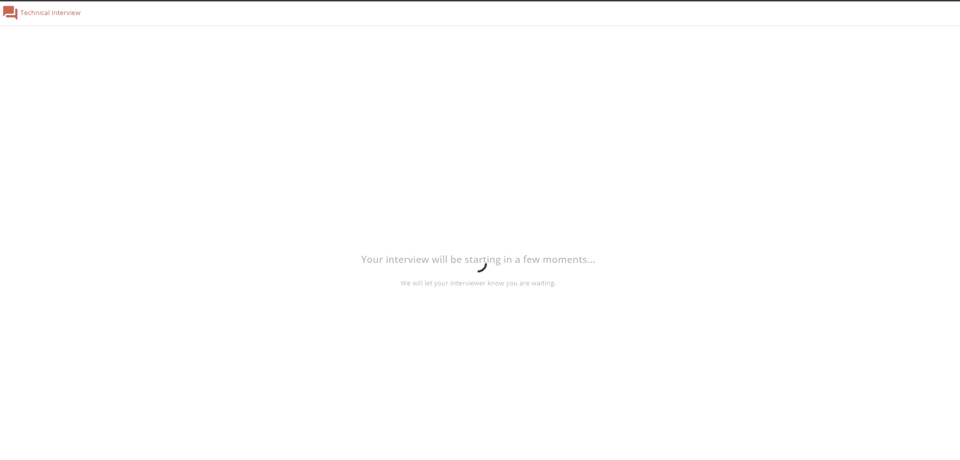 After clicking the JOIN button, you must wait for the interviewer to join the interview and let you into the room. Please wait on this screen until you are let into the interview session