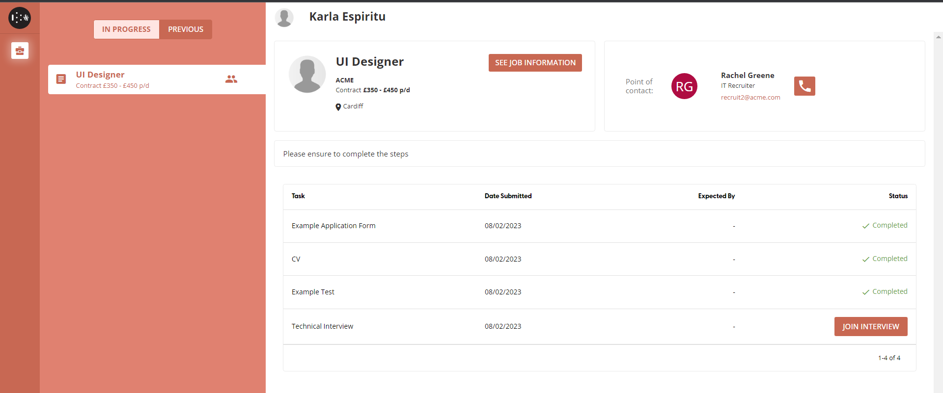 Once the interview session has finished, you can leave the interview and be taken back to your applications page by clicking on the red Leave Call button.