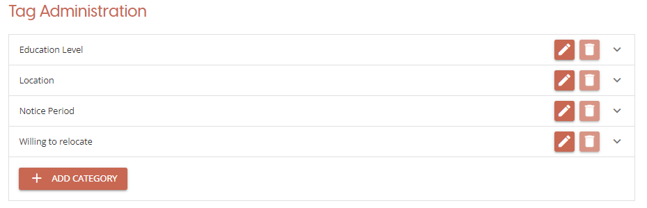 This page allows you, as the recruitment admin, to manage all tasks related to tag management. This includes creating Tag Categories, creating Tags for those categories and approving of any tag requests.