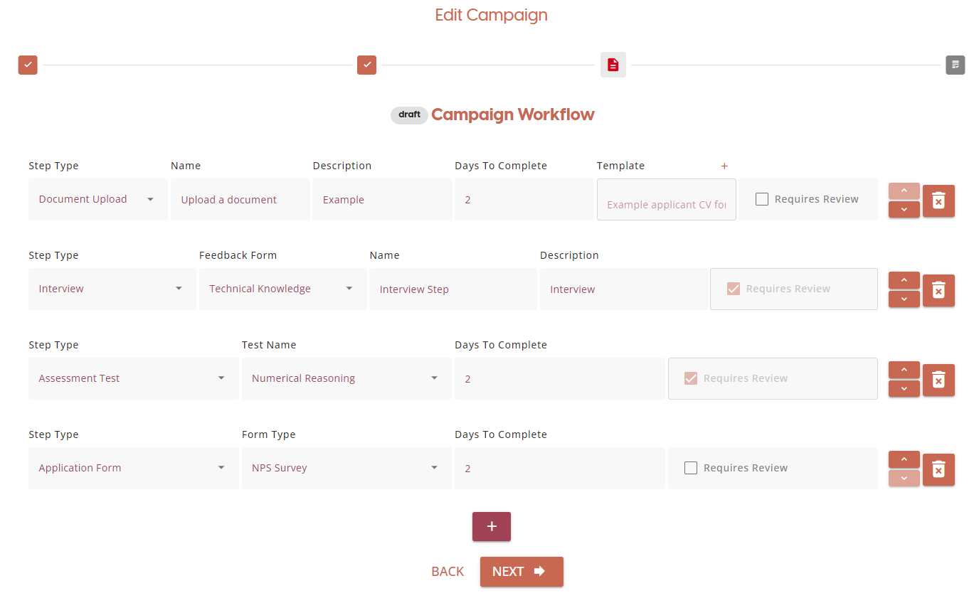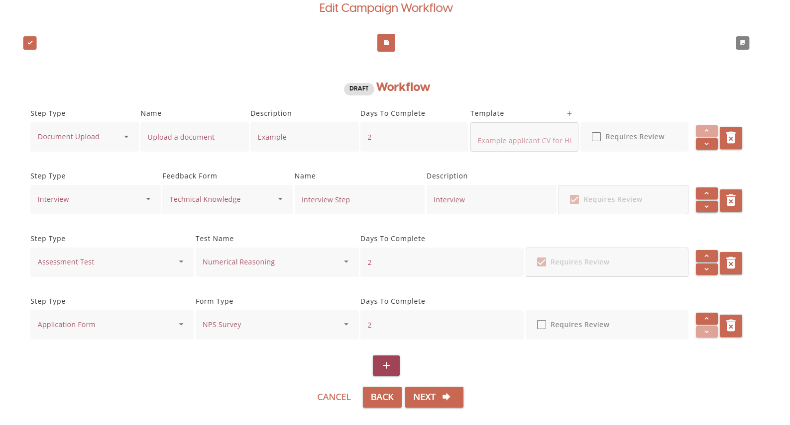 In order to avoid this scenario, you can create Campaign Workflow templates in HireNow. This allows you to pre-define the workflow steps of a campaign, which can then be selected during campaign creation. Another benefit of the Campaign Workflow Templates is that you can still edit the workflow steps after selecting the template, allowing you to make any required adjustments to the campaign before it goes live.