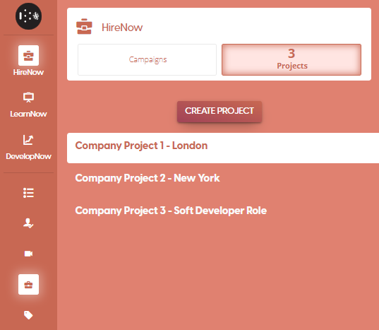 As a recruiter of HireNow, I am able to create Projects so that I can group together campaigns and ensure only the right people have access to view campaigns and applications.