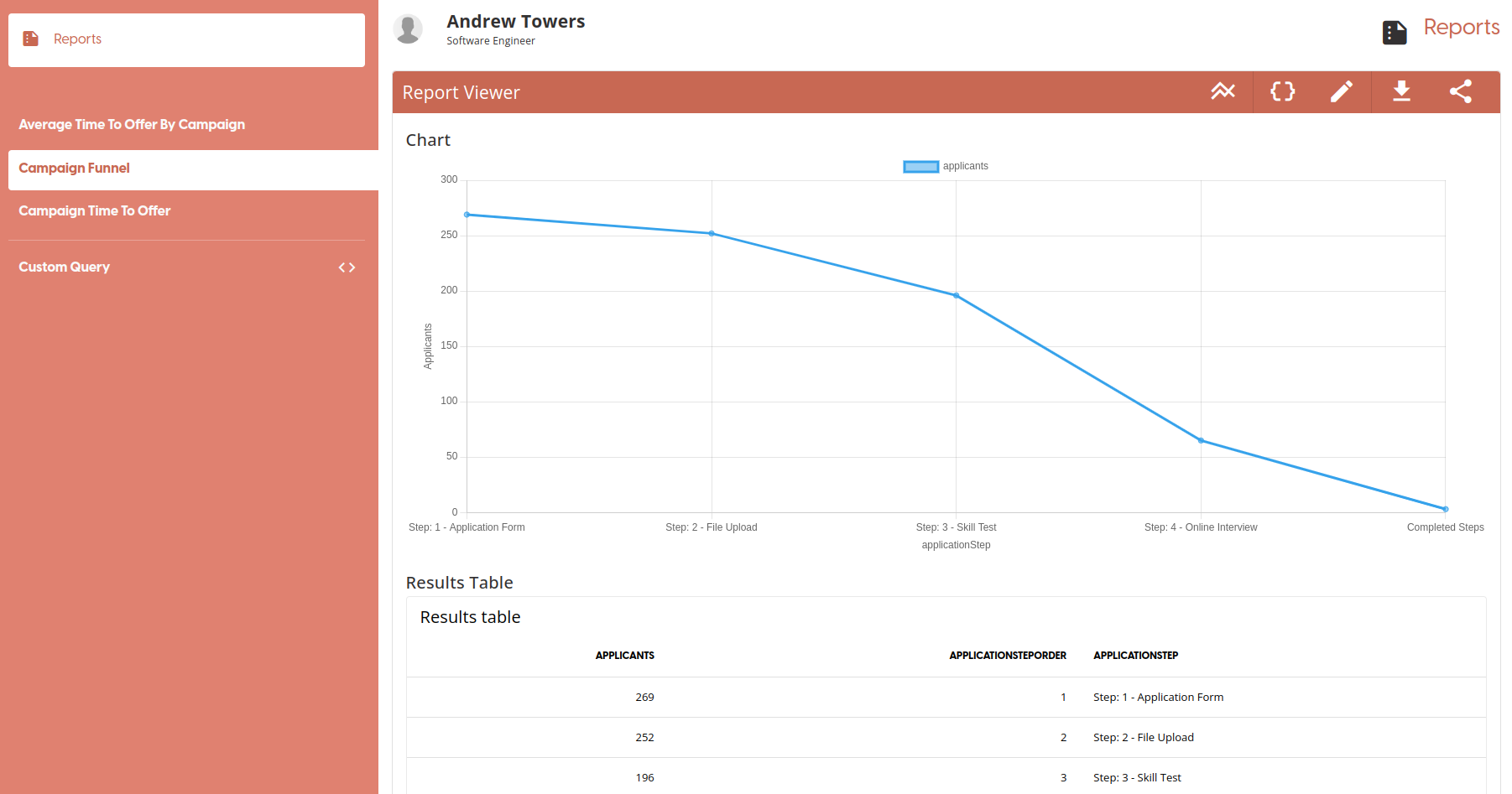 This report displays the average number of days it took for applicants on a particular camapgin to reach the Hired stage.