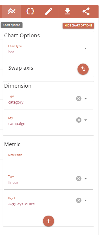 Lets you select the data set. If more than one data set is available, you can click on the + button to display multiple datasets on the same report.