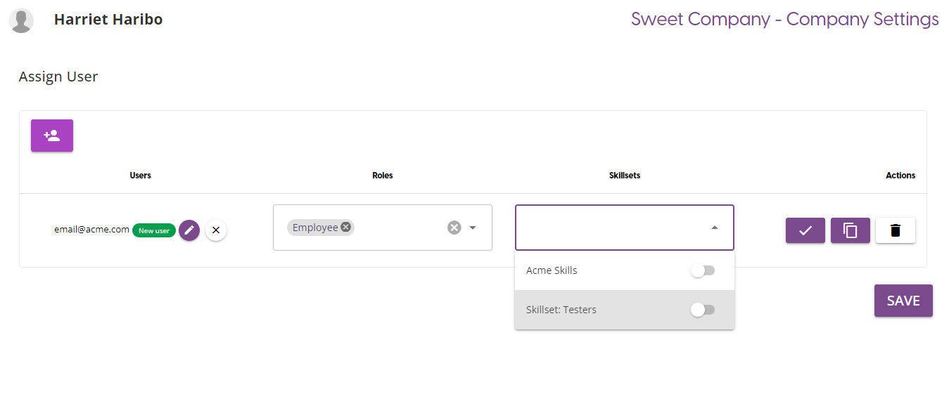 You also have the option to assign a skillset to a user from the Skillsets dropdown. If a user is already a skillset member, their skillsets will already be selected from the dropdown when selecting the user.