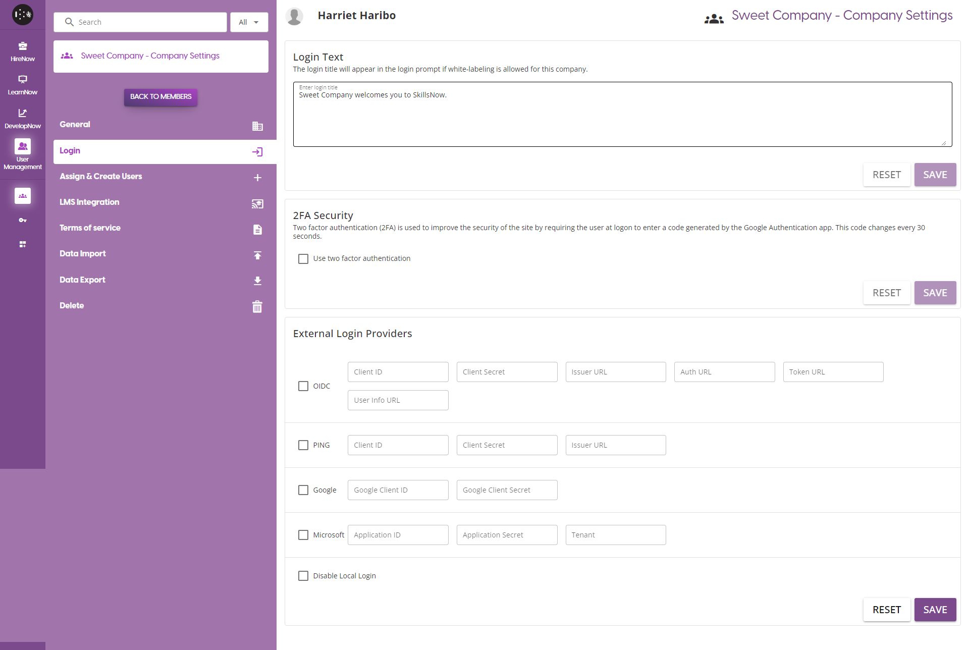 Login Text Update this to change the text displayed to users when they go to the company's SkillsNow Login page.